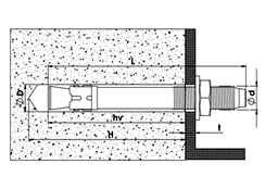 Kod No | M | L (mm) | ØD (mm) | H (mm) | hv (mm) | t* max (mm) | İki Dübel Arası Min. c(mm) | Dübelin Kenardan Min. Uzaklığı d(mm) | Uygulanacak Malzemenin Min. Kalınlığı e(mm) | Poşet Adeti | Poşet Kg. |