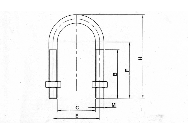 MONTAJLI KOD | MONTAJSIZ U-BOLT KODU | SOMUN KODU | ÖLÇÜ | ÇAP | AÇINIM | C | H | B | M | E | F |